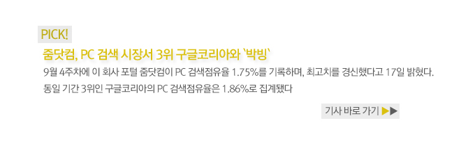 ¿Â¶óÀÎ ±¤°í Æ®·»µå! ÁÜ´åÄÄ, PC °Ë»ö ½ÃÀå¼ 3À§ ±¸±ÛÄÚ¸®¾Æ¿Í `¹Úºù`