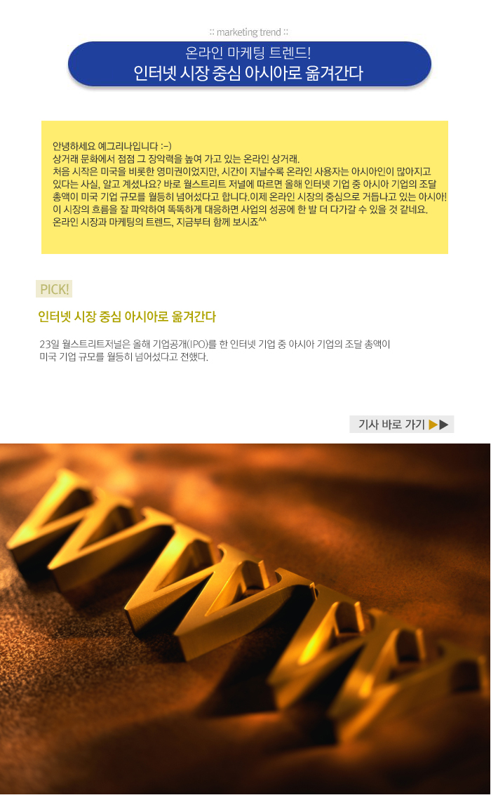 ¿Â¶óÀÎ ¸¶ÄÉÆÃ Æ®·»µå! ÀÎÅÍ³Ý ½ÃÀå Á᫐ ¾Æ½Ã¾Æ·Î ¿Å°Ü°£´Ù